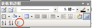 点击菜单中的表格按钮,点击绘制表格,弹出表格和边框对话框,在这个对话框中另外还有“升序、降序按钮,最后一个“E”字形的即是自动求和按钮,