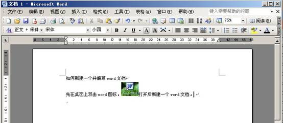 在这个打开的word文档中,可以编写文档,可以建立比较简单的表格,可以排版,最上方的蓝色条叫做标题栏,只要您把这个文档保存并命名后,上面的标题就会显示所保存的标题了,第二排是菜单栏;有:文件、编辑、视图、插入、格式、工具、表格、窗口、帮助等菜单,