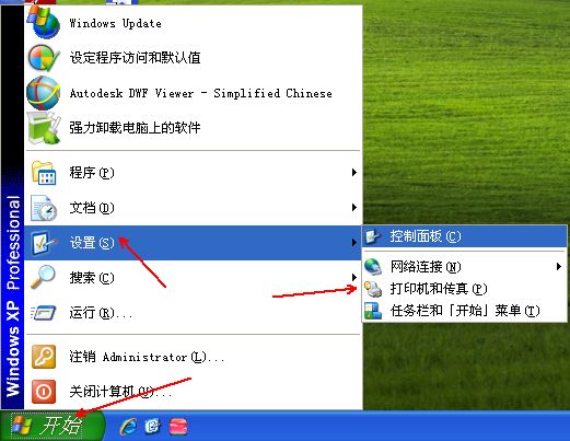 在电脑中只要正确的把打印机驱动安装好就可以了,你可以查看安装的打印机图标;点击【开始】、【设置】、【控制面板】、【打印机与传真机】如下图所示: