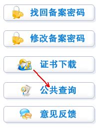 登录到如上图片的网站页面后,在右边有菜单“备案流程”、“自行备案导航”下有“管理用户下”如下图所示,在如下面的图片中点击“公共查询”按钮,