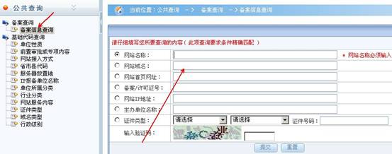 嫡出如下图的对话框,在对话框中点击左边的“备案信息查询”,弹出如右边的输入框,在网站名称中输入您备案时提交的公司全称,(营业执照上的公司名称)在下方的“输入验证码”中输入正确的验证码,如果当前的验证码看不清楚,可以占地验证码上的图标,直到看得清楚,输入后,点击提交,就会弹出您公司的备案信息,如果在弹出的对话框中没有信息,或提示没有信息,说明您公司的备案号没有通过。这就需要重新提交备案,或找您的网络商给予办理重新提交备案。