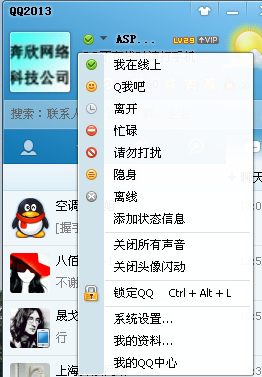 登录QQ后,在QQ面板上的上面有一个小三角,点击这个小三角,弹出如下图所示: