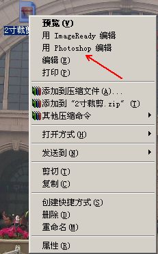 首先在照片上右击,在弹出的对话框中选择“用Photoshop编辑”打开Photoshop及这副图片,如下图所示: