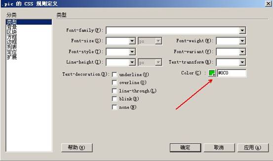 我们在制作网站时,有时需要把整个页面或部分内容设置为另外一种颜色,DW软件中本身对字体的颜色有默认的颜色,但为了统一风格,有的网站设计者在设计网站框架时就已经统一的CSS风格,所以在单独的部份内容要设置为另外一种颜色也就只有用CSS来解决了。
