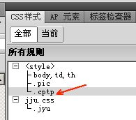 通过上面的操作,只能调整图片大小尺寸, 不能调整图片排列的数量,比如本来每排排列的图片数是3个,而每个图片的间隙很大,与整个页面不协调,调整的方法是:用鼠标拖动选择如上图1的图片标志,在下面的属性栏就会显示出如下图的“类”,右侧就会显示CSS的“类”如CPtp,如下图。这就知道了该图片是CSS中的哪个“类”。