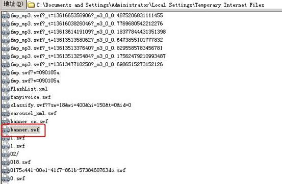 首先使用IE浏览观察该Flash,接下来依次选择“工具→Internet选项”,在“常规”选项卡中单击“设置”按钮,在打开的窗口中单击“查看文件”,这样系统会在资源管理器中打开所有脱机浏览文件。由于这里文件众多,我们可以首先在空白区域单击右键,选择“排列图标→类型”菜单,这样可以很快定位到类型为“Shockware Flash Object”的文件,我们要保存的Flash文件就乖乖地躺在这里了, 在上面的Flash图标中,找到如上images/banner.swf中的banner.swf 可以在该Flash图标双击,运行该动画。我们只需将其复制到硬盘的其他区域即可。这个办法不仅不需要工具,而且还可以批量保存Flash,是不是比较简单呢?