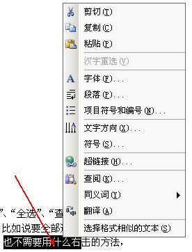 但为了操作快捷起见,我们一般在操作中都是用快捷方式,比如说要全部选择该篇文章,按ctrl+A即全部选中了,不需要用鼠标拖动的方式去选中,假如一篇文章有十几或几十页,你怎么用拖动的方式去选中?