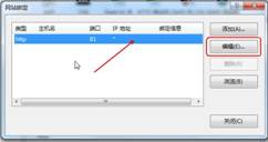 在“网站绑定”对话框中选择该站点,点击右侧的“编辑”