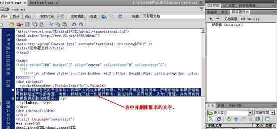选中下图中的二行代码,点击右边“服务器”行为下的重复区域,选择相应的“记录集”,选择“所有记录”,保存即可。