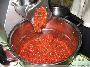 因为剁辣椒在用手工刀剁时是很辣手的,所以最好是使用绞肉机把辣椒绞碎,如下图一、二