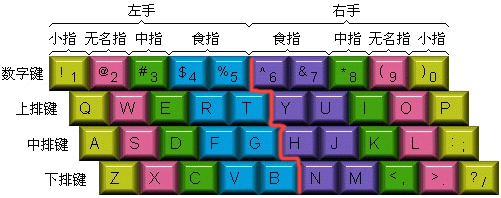 键盘的“ASDF”和“JKL;”这8个键位定为基本键。输入时,左右手的8个手指头(大拇指除外)从左至右自然平放在这8个键位上,左手大拇指或右手大拇指同时负责击打空格键。这样,十指分工,包键到指,各司其职,实践证明能有效提高击键的准确和速度。