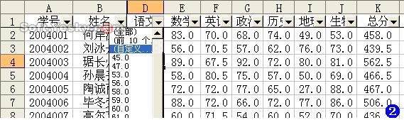 1、启动Excel,打开相应的成绩表,选中数据表中任意一个单元条,执行“数据→筛选→自动筛选”命令,进入“自动筛选”状态(如图2)。