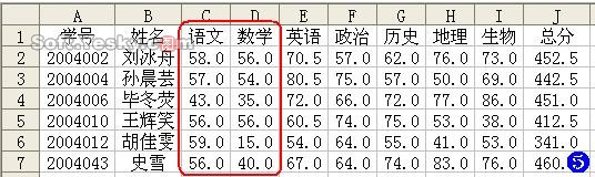 图1是一张普通的成绩登记表,如果需要将某(几)门学科成绩不及格的学生数据单独保存到另外一个工作表中,可以通过“自动筛选”和“高级筛选”来实现。