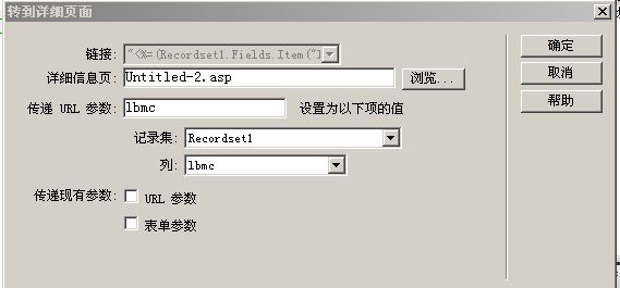 网页的产品类别制作技术在制作产品页面时要求比较强的操作技术,否则无法实现。 (二)、选中页面中的{Recordset1.lbmc}(制作时拖入的)把该 “Untitled-1.asp”页面在右边的“服务器行为”面板下拉列表中点击“转到详细页面”,在弹出的“转到详细页面”进入如下图的设置:(在浏览中应选择“Untitled-2.asp”)列:在下拉列表中选择“lbmc”,如下图。