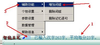 它还有不少强大的功能,譬如我们在打字时能记载你每分钟输入多少字,总共已经输入多少字,另外该软件还有强大的记忆功能,可能把您曾经输入过的文字记忆下来,当下次输入到某一个字时,曾经输入过的文字就自动弹出来了,如果您想利用这些弹出的文字,只要用小指先按下“;”号,再用无名指按下面的“>”键,就会把这些弹出的文字利用上。至于更多的功能,朋友们可以一边学习,一边探索。这里就不多说了。