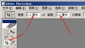 打开了照片,并在Photoshop中把截切工具设置为宽23px高为32px,截图如下: