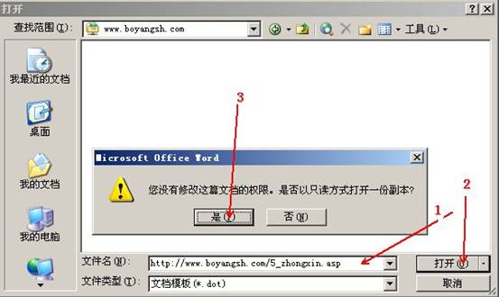首先把不能复制网站的网址复制下来,然后打开的word文档,在word文档中点击菜单栏中的“打开”,在下面的图中进行操作,