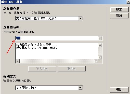 在弹出的对话框中如下图输入一个新建的CSS样式,点击“确定”按钮。