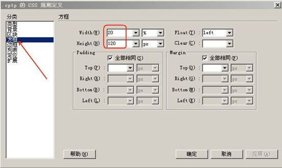 弹出“cptp的CSS规则定义”对话框,在对话框中点击方框,在右边的红线中调整图片距离。点击下方的“确定”,保存全部,预览。