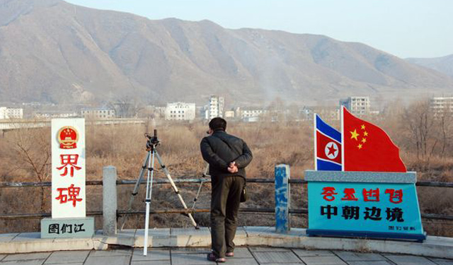 (中朝边界的图们口岸,一名游客正在向朝鲜方向眺望,图片源自网络)