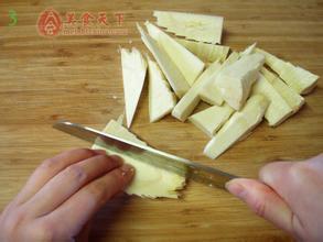 - 把冬笋去壳皮洗净,从中间切断为二截,头部横切,上部直切。(网上说的把笋切片后放于开水中煮五分钟,这样会失去味道。)