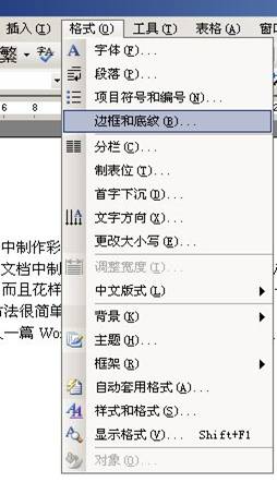 打开或者输入一篇Word文档,点击菜单栏中的“格式”,在弹出的下拉列表中选择“边框