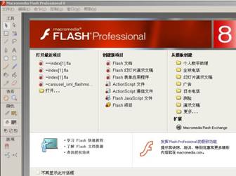 “打开最近项目”(将最近打开的9个文件名称和路径保存起来,方便用户快速打开);从模板创建是(针对某项功能所制定的Flash文件);扩展即(安装插件)在线教程即是可以通过网络学习Flash等。