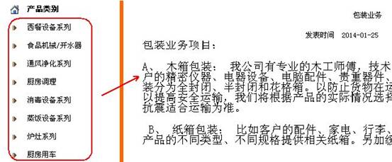网站页面中的字体大小不协调 有时候,我们在后台发布文章或者添加产品时需要加上产品说明,但是,添加上这些文字后在前台您就会发现,这些刚才添加的内容字体偏大,与网站页面中的文字不协调,影响页面美观。下图中的左边产品类别与右边的内容明显感觉到不太协调。 解决的方法是,把所要调整字号的文字选中,点击上边的“字号”,在弹出的下拉列表中选择合适需要的字号,点击“修改”按钮,完成操作。
