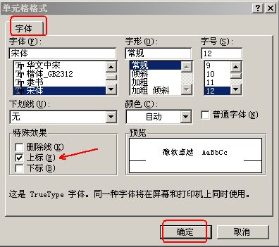 弹出“单元格格式”对话框,在对话框中选择“上标”如下图所示: