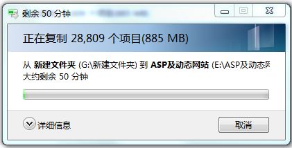 从以上的二个截图可以看出,Win7系统只不过是图片好看点而已,截图中显示,Win7系统复制885MB的文件需要50分钟,而XP系统复制同一文件只需3分多钟,我们在使用电脑时也同样为了追求速度,像Win7系统的这种速度又会有谁受得了呢?虽然Win7系统显示的操作对话框是彩色的,但速度如此之慢又有屁用,据了解,现在使用Win7系统的人,大都是哪些所谓赶时髦的人或者是爱新鲜的人,在我的周围还有好多人买的新电脑把系统改为XP系统的人为数不少。或许Win7系统永远占不了很大的市场。
