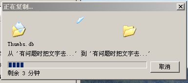 为了说明Win7系统有多慢,我们用二台电脑进行复制文件操作,XP系统2G内存,主板及CPU均比Win7系统的电脑低,而Win7系统是用的4G内存,在复制同样的文件做出了对照,见下图所示:(图一为Win7系统自制文件的速度)