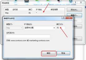 在弹出的“编辑网站绑定”对话框中点击“端口”进行修改。修改完后点击确定按钮,完成操作。