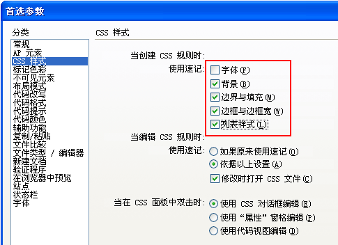 代码减少了,也方便阅读了,实现起来很简单,选编辑中的首选参数——css样式,把图中红框部分的选中就行了。只要进行如上简单的操作,你在制作网站中,也可以生成出大站风格的css了!这个容易吧!