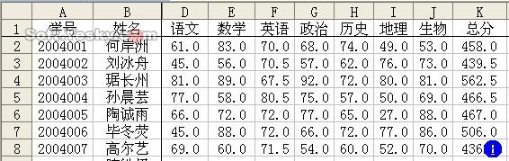 图1是一张普通的成绩登记表,如果需要将某(几)门学科成绩不及格的学生数据单独保存到另外一个工作表中,可以通过“自动筛选”和“高级筛选”来实现。